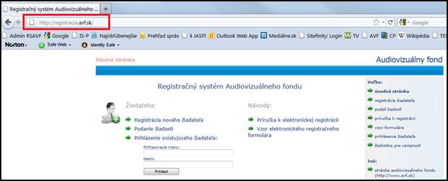 žiadosti. Po prihlásení sa do registračného systému (ďalej len „RS